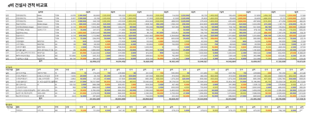 건설사는 하우빌드가 제공한 도면과 내역서를 다운 받게 되고, 이를 토대로 견적을 작성하게 됩니다.